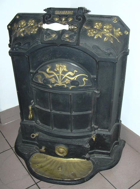 On peut remarquer que ce poêle est mobile, sur quatre roues métalliques alors que la salamandre n'en a que trois.