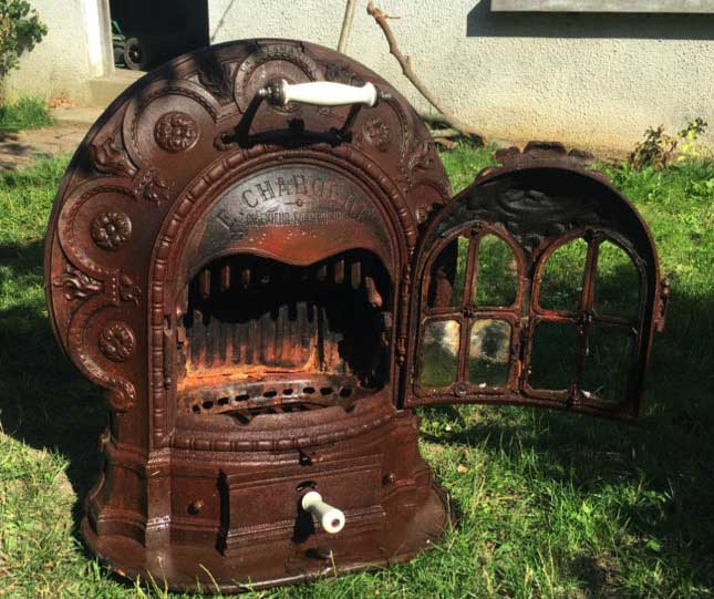 la vision du feu à travers des carreaux de mica et l'élégance de l'appareil.