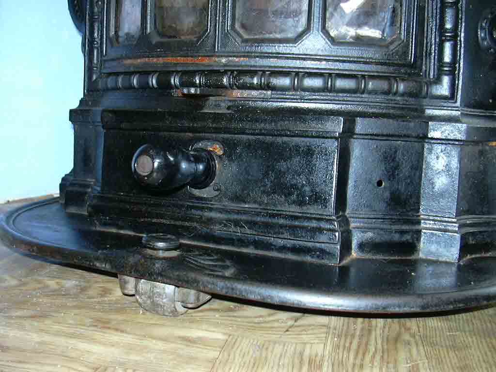 Sur cet exemplaire de salamandre, les poignées sont en céramique noire alors que